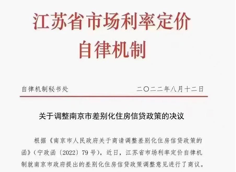 8月12日,有消息称,江苏省市场利率定价自律机制自律机制秘书处发布《关于调整南京市差别化住房信贷政策的决议》。据媒体从8月12日下午从工商银行、中国银行南京市营业网点处了解的情况显示,该政策属实二套房按揭首付多少,下周一(15日)开始执行。
