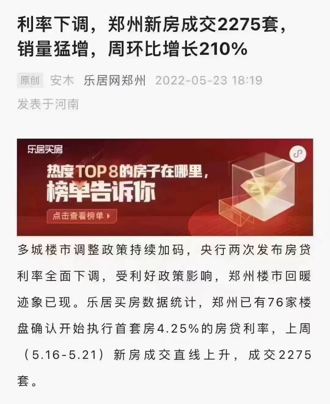 继房产利率下降到4.25%,刷新了1991年以来历史最低后,郑州多个楼盘开始执行首套房首付20%的最新政策,双重政策组合极大降低了购房者的准入门槛。