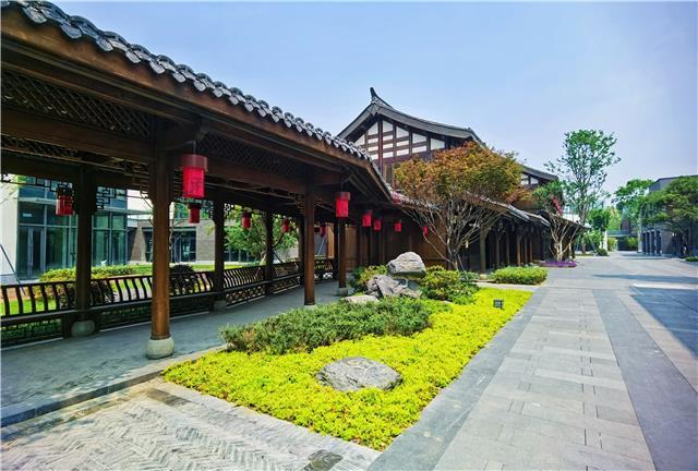 园林水池古色古香移步换景,亭台水榭错落有致,桥头桥尾水岸街巷相接,绘就出一幅艺术人文闲适安逸的美好生活景象。