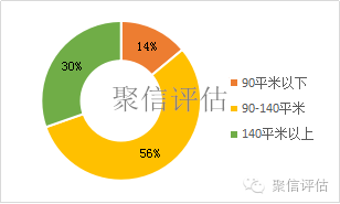 据统计分析,太原市90-140平米的改善型户型商品住宅成交占市场绝对主导地位。2016年第二季度太原新建商品住房市场,90平方米以下的小户型成交3354套,共26.64万平方米,占全市总成交面积的13.93%,均价7523元/平方米;90-140平方米的改善型户型成交9481套,面积106.51万平方米,占总成交量的55.70%,均价7504元/平方米;140平方米以上的大户型共成交3182套,面积58.06万平方米,占总成交量的30.36%,均价8250元/平方米(见下图)。