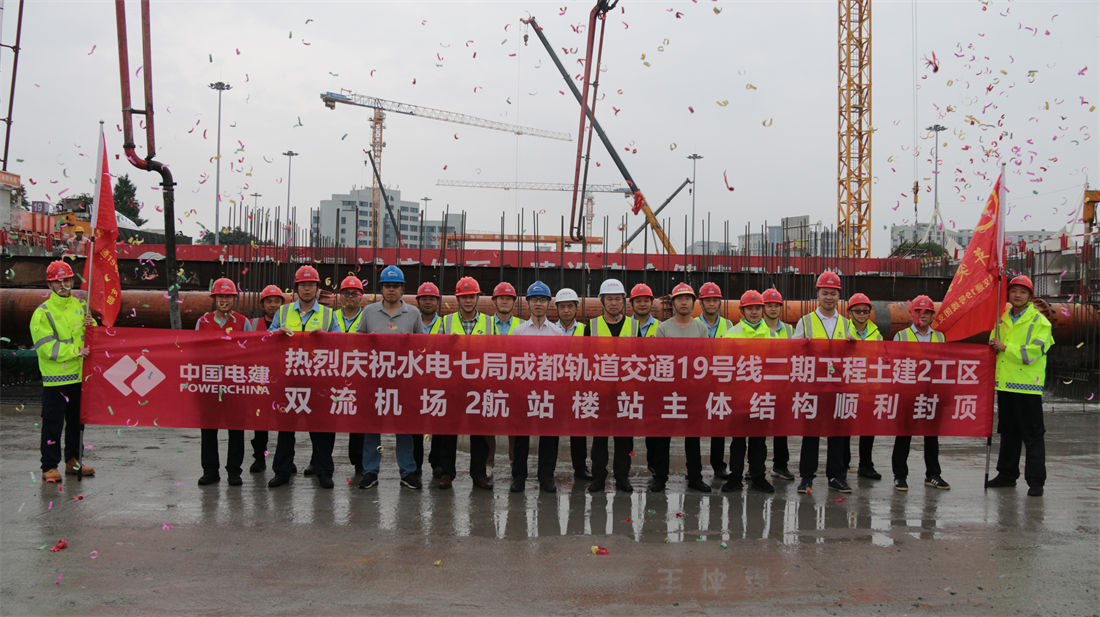 成都轨道交通19号线二期工程双流机场2航站楼站主体结构封顶