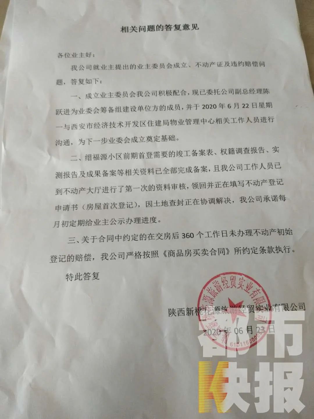 记者于近日来到尚都住宅小区,在采访中,张先生和其他业主称,“我们一直都在等开发商给我们个答复,可是这么长时间过去了,到现在都见不到房本的影子,甚至连房本办理进展到哪一步了都不清楚,房子拿不到房本民生尚都房产证,就没有办法进行买卖交易,没有办法过户,大家真的都很着急。”