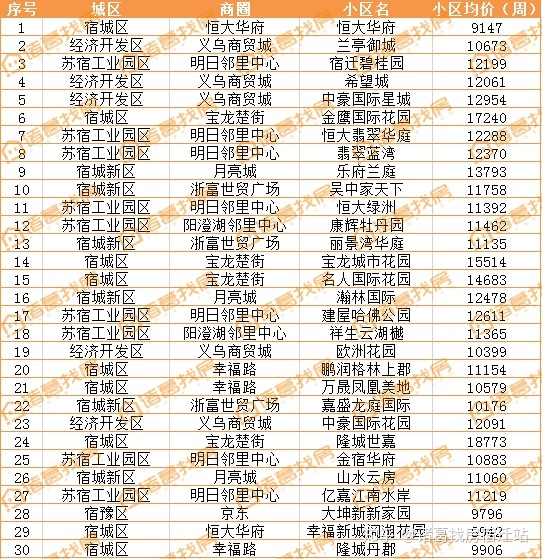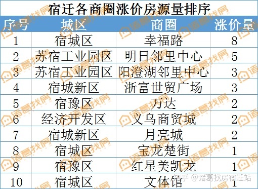 上周商圈涨价房源量TOP里宿城区幸福路商圈以8套涨价房源量排名第一。