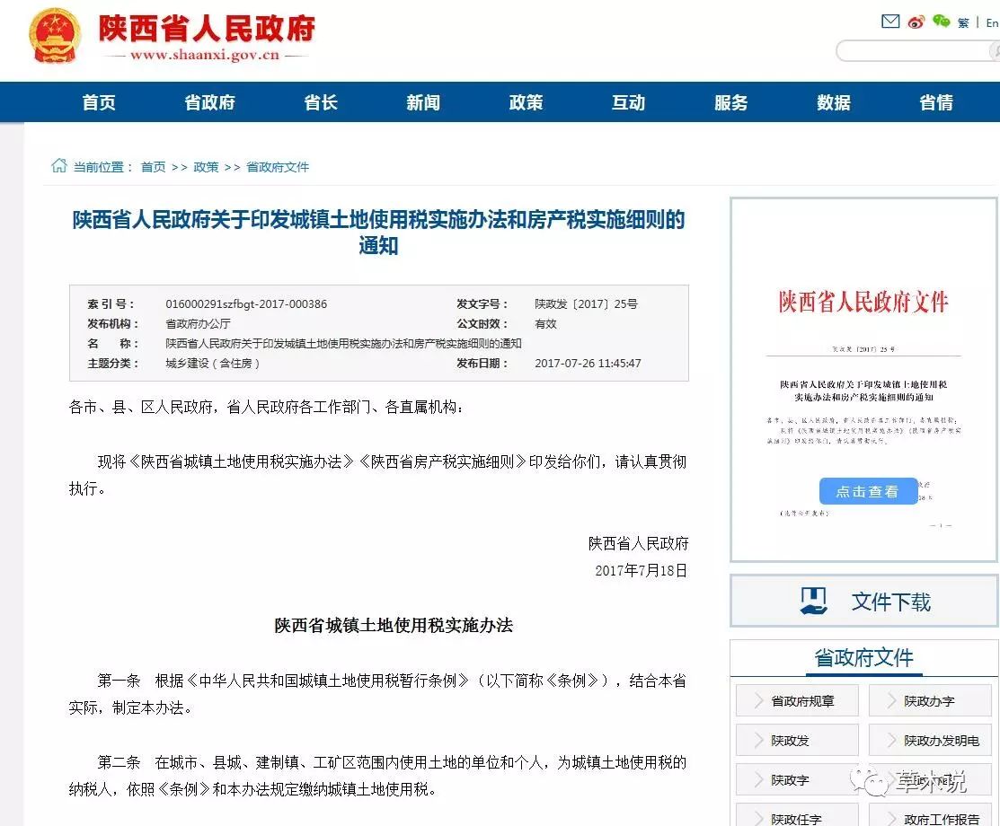 陕西省人民政府发布了关于房产税实施细则的通知(附全文)