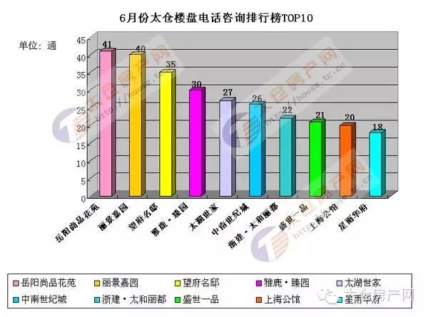 6月份,网友通过太仓房产网 400电话对各项目的咨询量,排名前10位的统计数据如下: