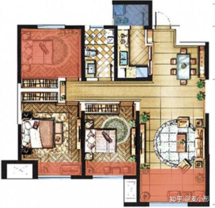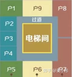 缺点:至少有一个宽面是墙,采光和通风效果较差,无法做到前后通透;居住密度高;容易出现暗角(采光差)和边角地带;偶尔会有奇形怪状的户型出现