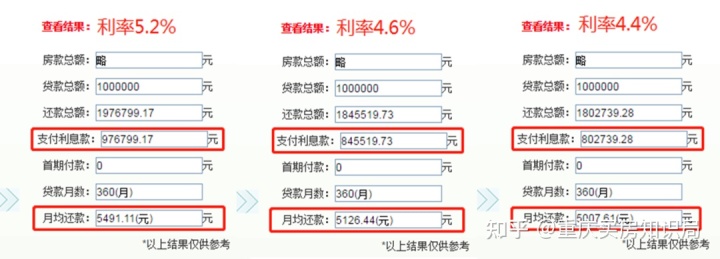 利率5.2%、4.6%、4.4%的月供和利息差别