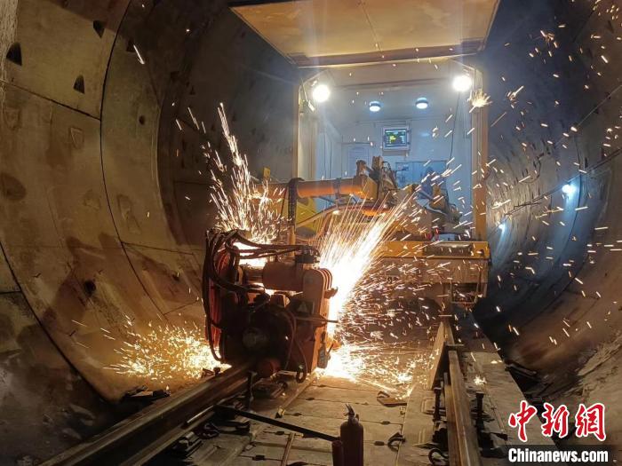 (张旭)记者20日从中建铁投轨道交通建设有限公司获悉,该公司参建的重庆轨道交通5号线北延伸段已于当日实现全线“长轨通”。中建铁投轨道交通建设有限公司供图重庆轨道交通5号...