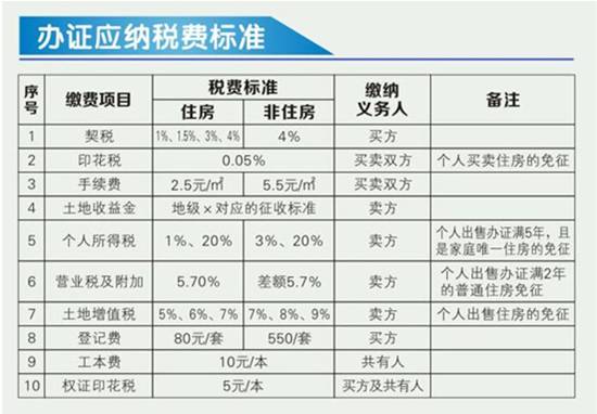 应缴税费标准(图下所示)