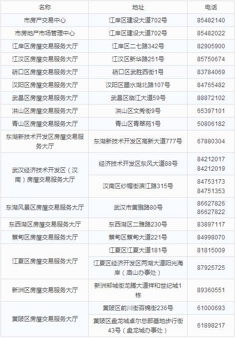 武汉市房地产交易管理中心和各区房产局