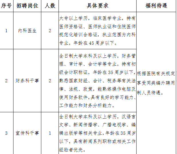 7.2021年普通招生计划应届毕业的硕士研究生不限年龄,已获得住院医师规范化培训合格证的往届硕士研究生、往届本科生年龄可放宽到35周岁(1986年3月31日及以后出生)德州医院招聘信息,博士研究生学历年龄可放宽到45周岁(1976年3月31日及以后出生)。