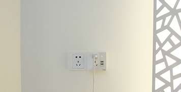 产品的整体尺寸恰好能覆盖常规插座,一体化墙面美学,能更好融入现有家居设计中。同时二、三插孔间距足够,小编将普通三插和大尺寸的充电器插头分别插入施耐德电气绎尚智能插座和原有的常规插座中,施耐德电气绎尚智能插座上的两个插头间还留有一定余地,而常规插座上的无法同时完全插入。