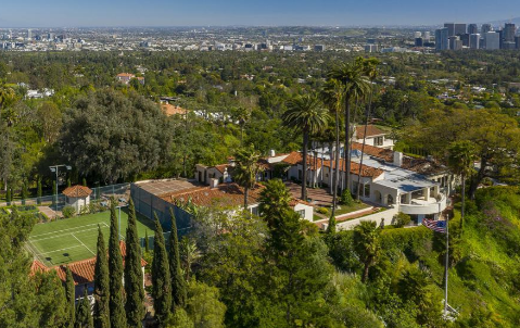 该房屋拥有四间卧室,七间浴室和两间旅馆,以及一个网球场和电影院。它占地2.5英亩,并享有比佛利山庄和太平洋的美景。詹姆斯可能会把房子拆掉并建造一个新的更大的庄园。