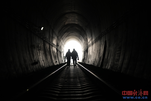 为了提高“天窗”利用率,职工们背着20余斤重的冰袋,在5400多米的隧道内往返穿梭。虽然火车穿越隧道时间不足6分钟,可作业人员却要在隧道中负重步行近2个半小时才能完成检修任务。