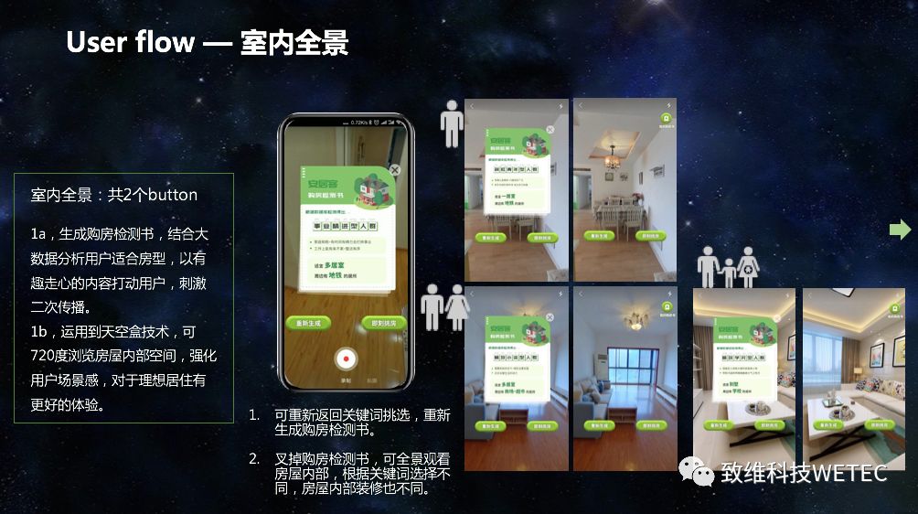 徐丽萍介绍,目前国内除了这种交互式体验看房外,“360全景看房”“720全景看房”等也颇受青睐。“这些全景看房打造的虚拟交互环境并不是通过三维建模的方式构建,而是通过全景照片的方式构建,通常可以把一个场景的前后左右一览无余地‘推’到观者的眼前,实现无任何死角的场景视觉展示。”