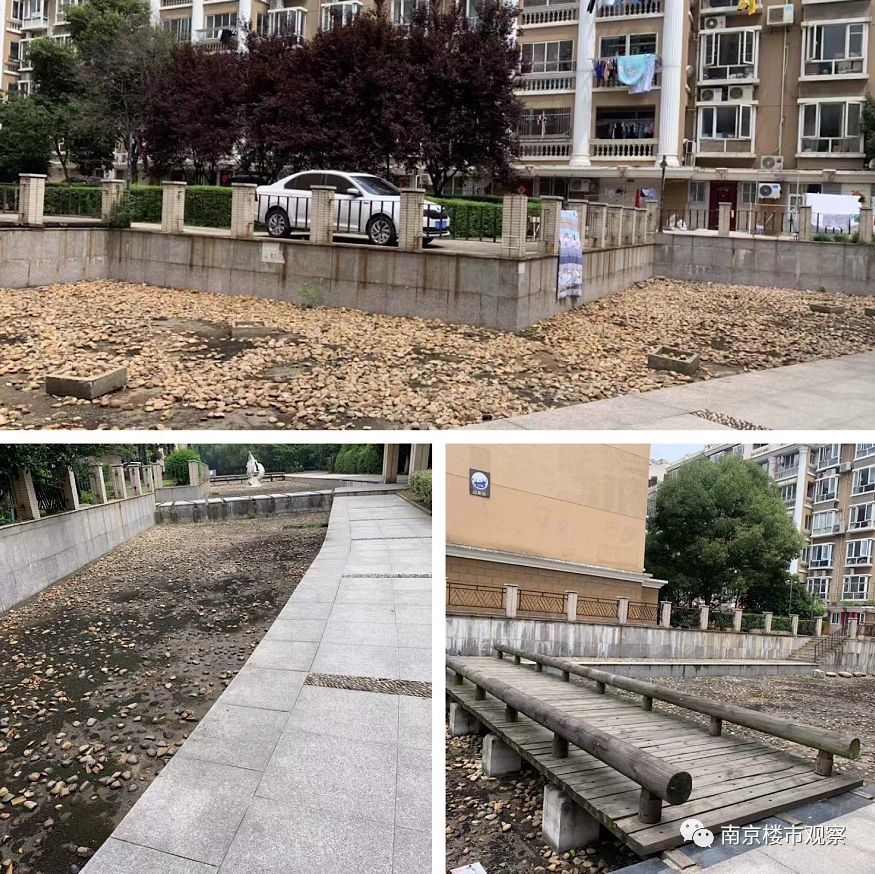 小区内原先的池塘,现在已经完全干涸。