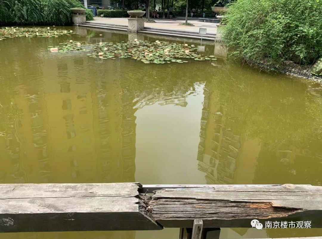 而另一侧的池塘里水则十分的浑浊,就连护栏都已经损坏了。