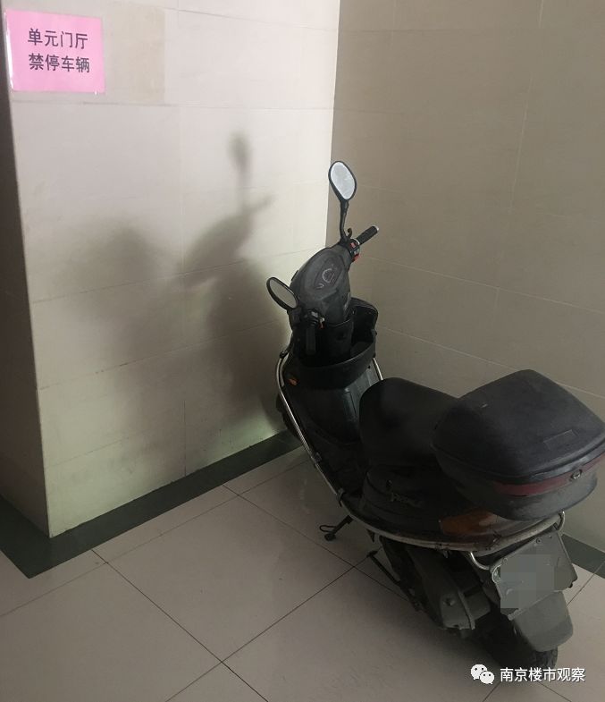 单元楼内贴着禁停车辆的位置依然有车停放在此处。
