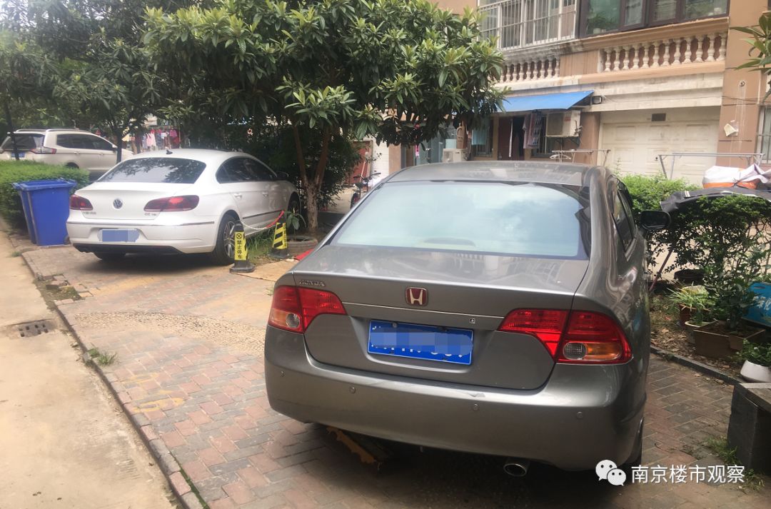 然后车就在小区到处乱停,一些禁止停车的地方,或是绿化带内,也有业主停车。