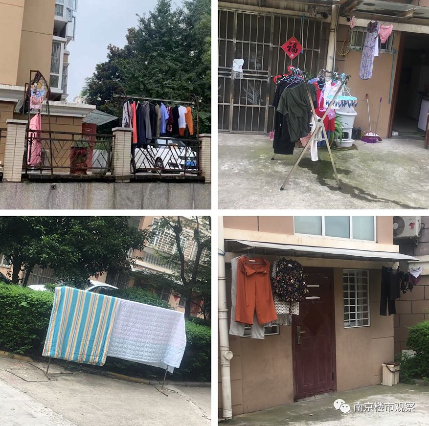 小区内有很多业主私搭的衣架,很多地方都有私自晾晒衣服的现象。