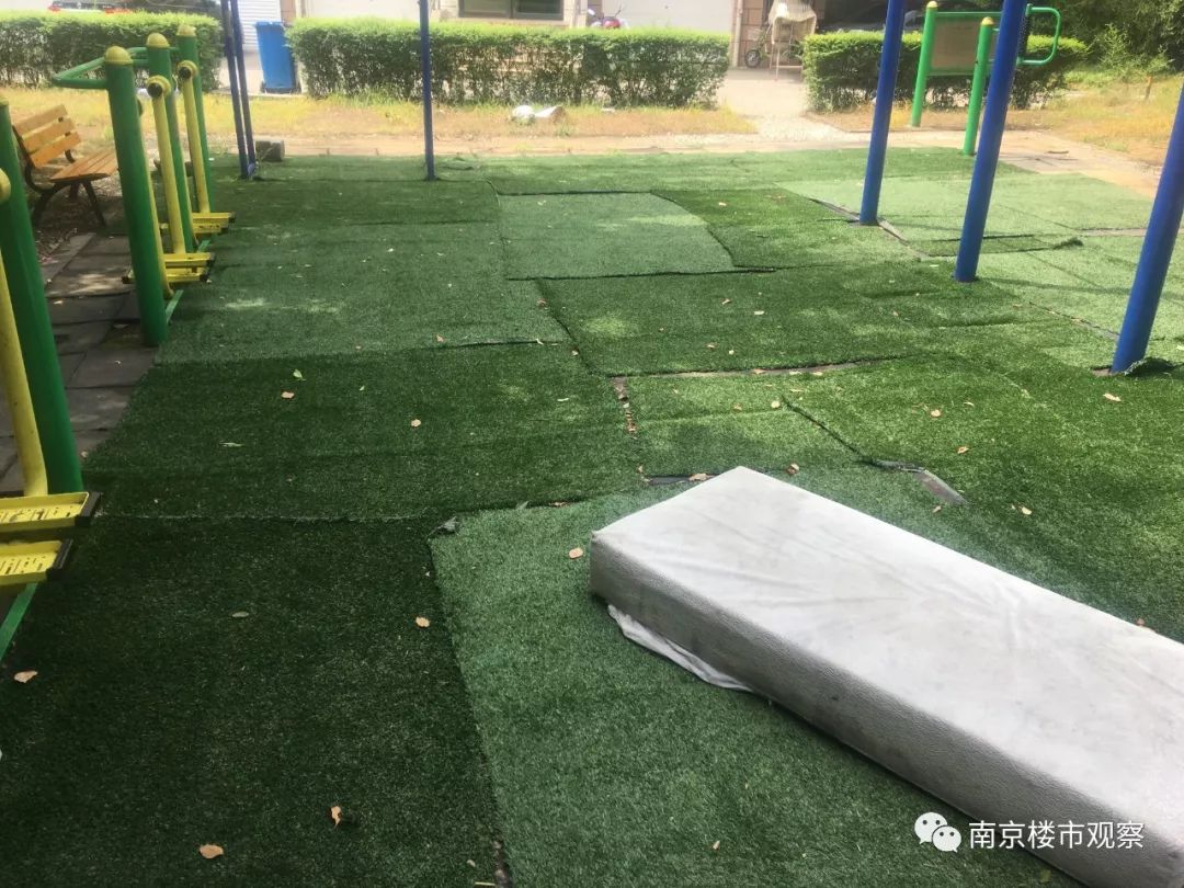 游乐区内的草皮只是盖在地上,并且很不服帖,很容易绊倒。